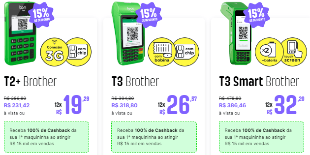 *Taxas Ton Brother são adequadas para quem tem faturamento mínimo de R$ 2 mil por mês.